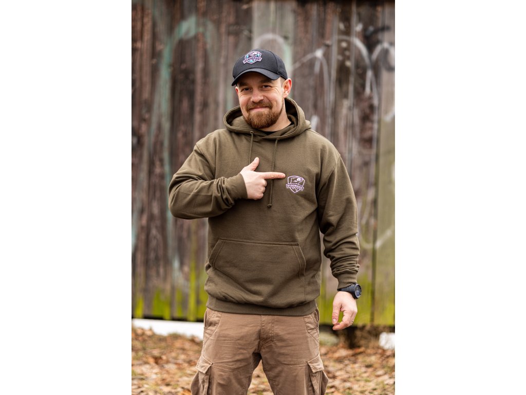 Mikina je z bavlny, a je ve velmi slušné gramáži a kvalitě. Tohle není jen levná potištěná mikina, tohle je funkční věc, která tě na rybách zahřeje, a nebude po pár vypráních vypadat jak kus hadru :)